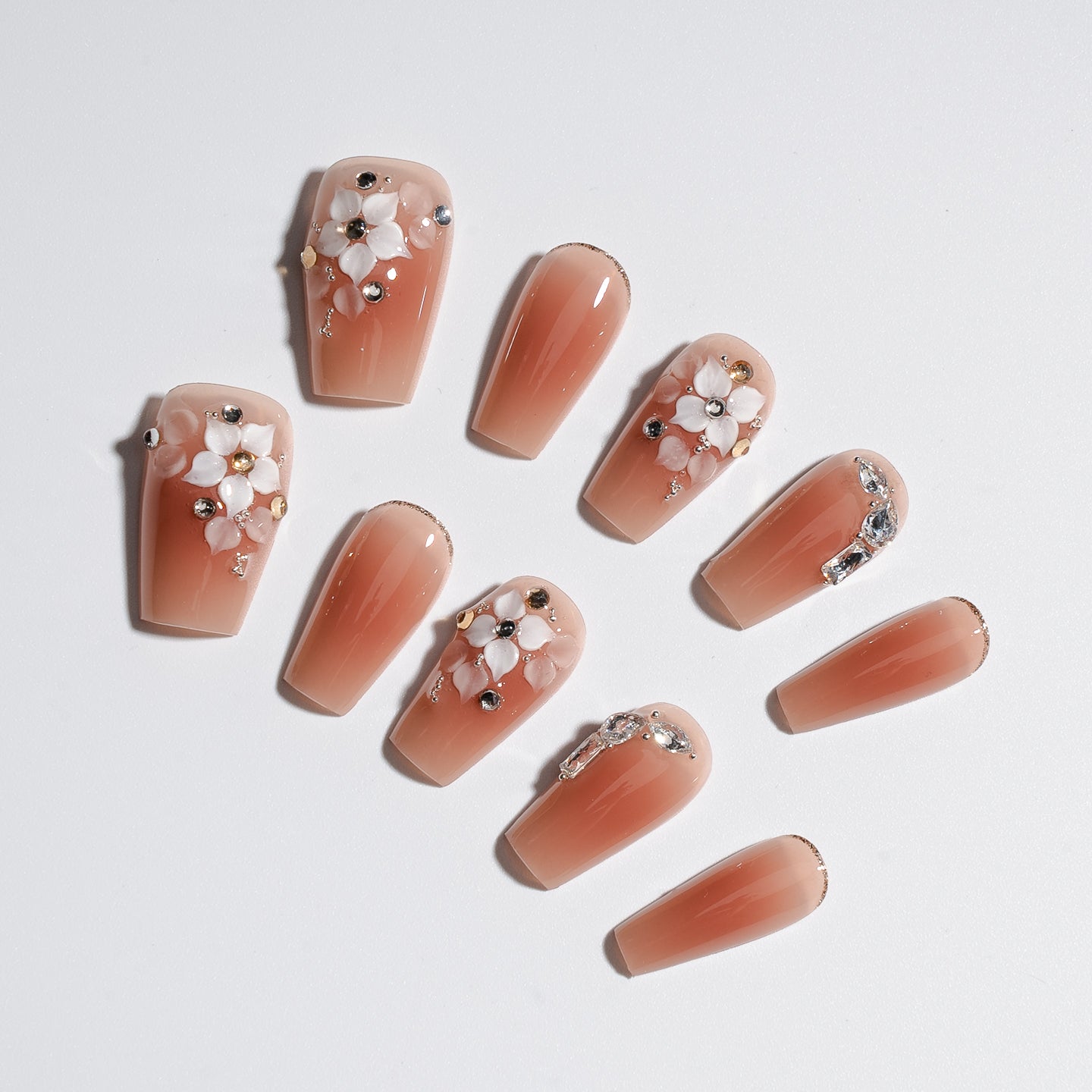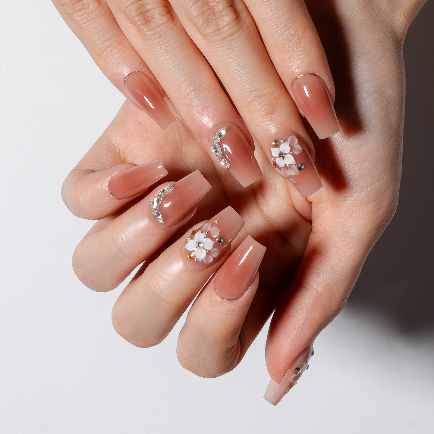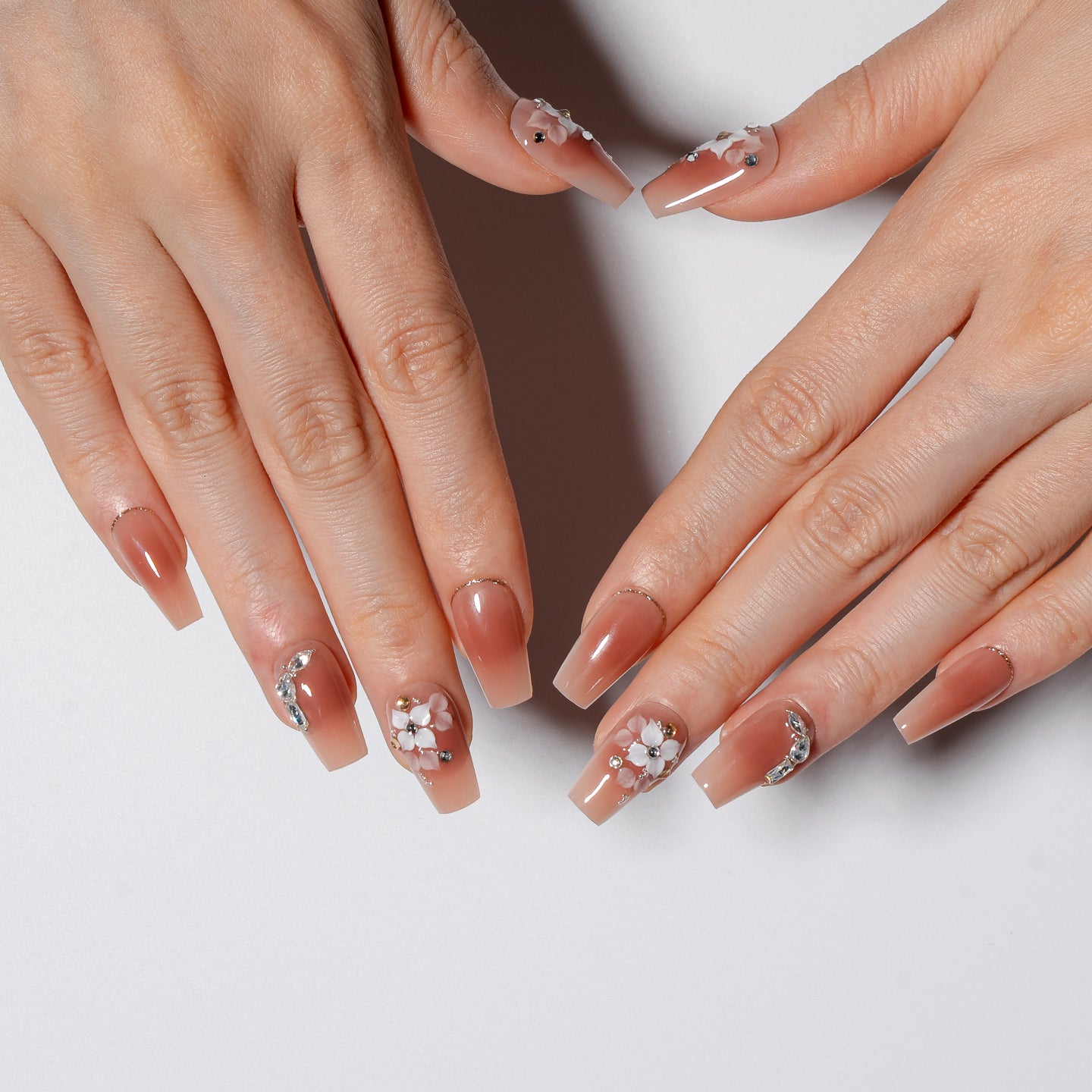 Nailly Celestial Petal is an elegant fantasy grounded in soft neutrals. Featuring blooming 3D white florals, sparkling gems, and a warm nude base, this set feels like spring stardust caught in full bloom. Romantic, radiant, and timeless, a flower for every fingertip.